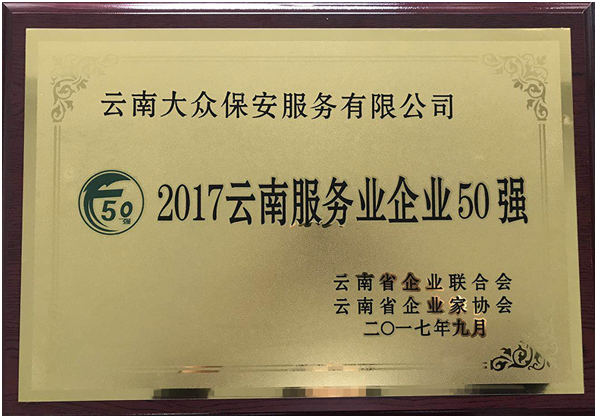 云南大眾保安服務有限公司再次榮獲“云南服務業企業5...